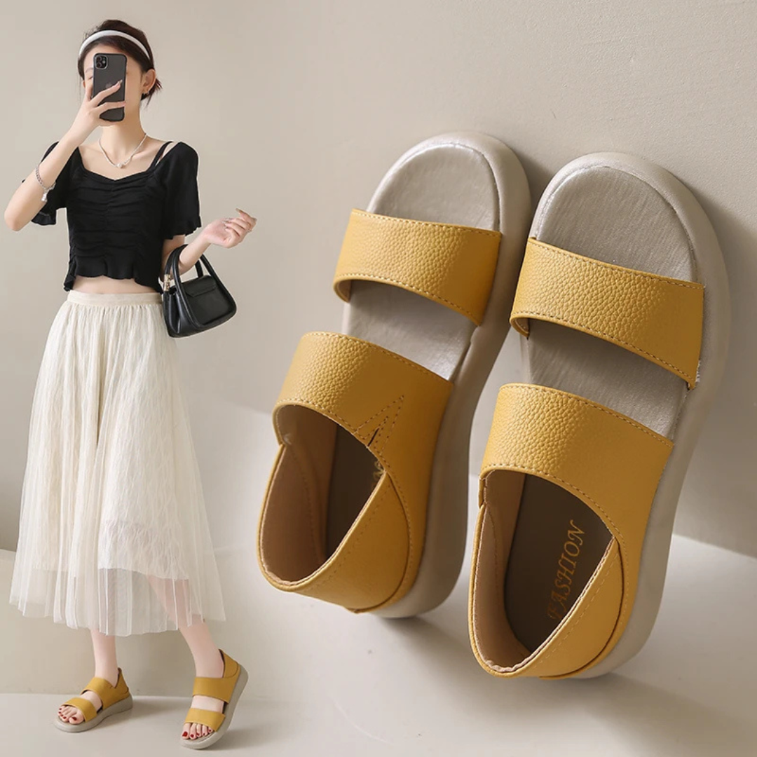 Diese außergewöhnlichen minimalistischen Platform-Sandalen repräsentieren die perfekte Verbindung aus schlichter Eleganz und praktischem Komfort. Die sorgfältig durchdachte Kombination aus zeitlosem Design und stabiler Platform-Konstruktion kreiert einen mühelosen Look für Ihre entspanntesten Sommermonate. Ein wahres Essential für stilbewusste Frauen, die authentische Einfachheit und mühelose Eleganz zu schätzen wissen.