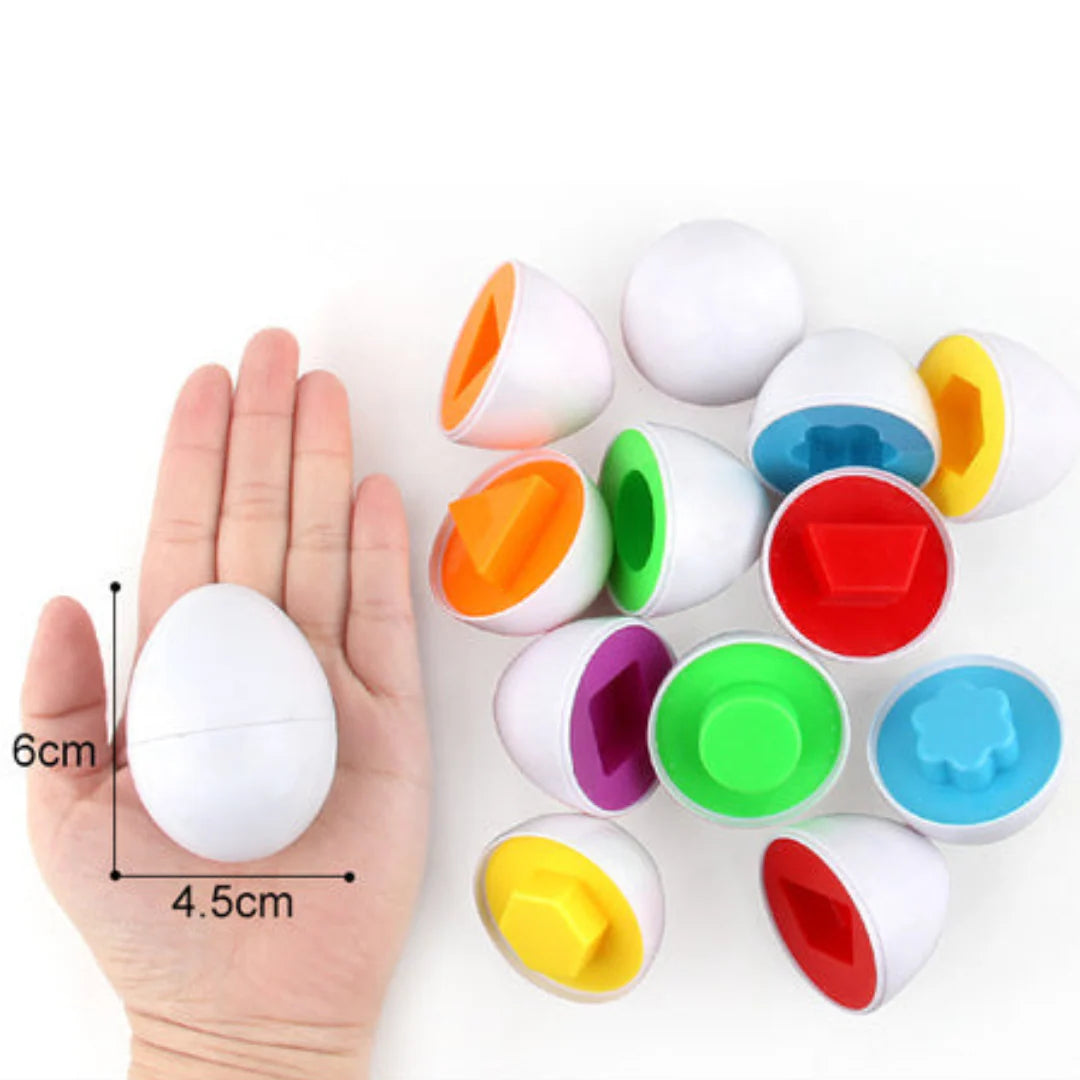 Das Ziel ist es, passende Formen und Farben zu finden und sie zusammenzufügen, um ein ganzes Ei zu bilden. Ein großartiges Spiel, das die Entwicklung deines Kindes fördert und gleichzeitig die Hand-Auge-Koordination, Feinmotorik und Formerkennung verbessert.
