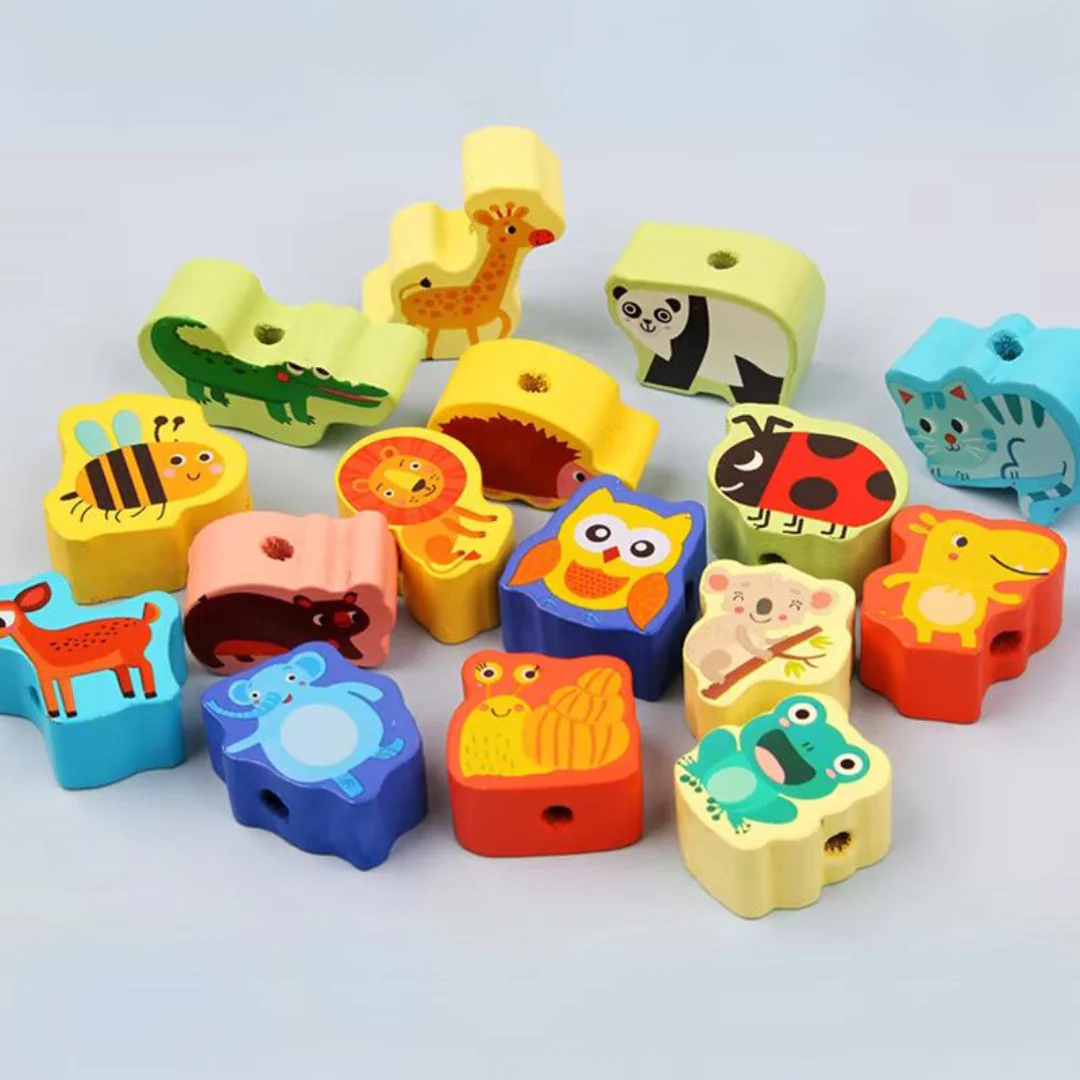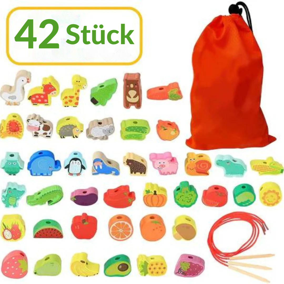 Frucht Fädelspiel | Montessori Spielzeug mit Obst, Tieren und Gemüse