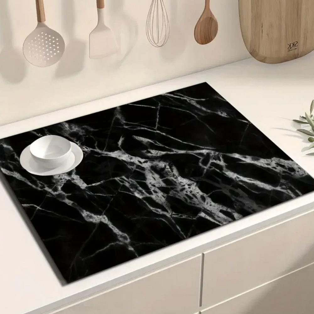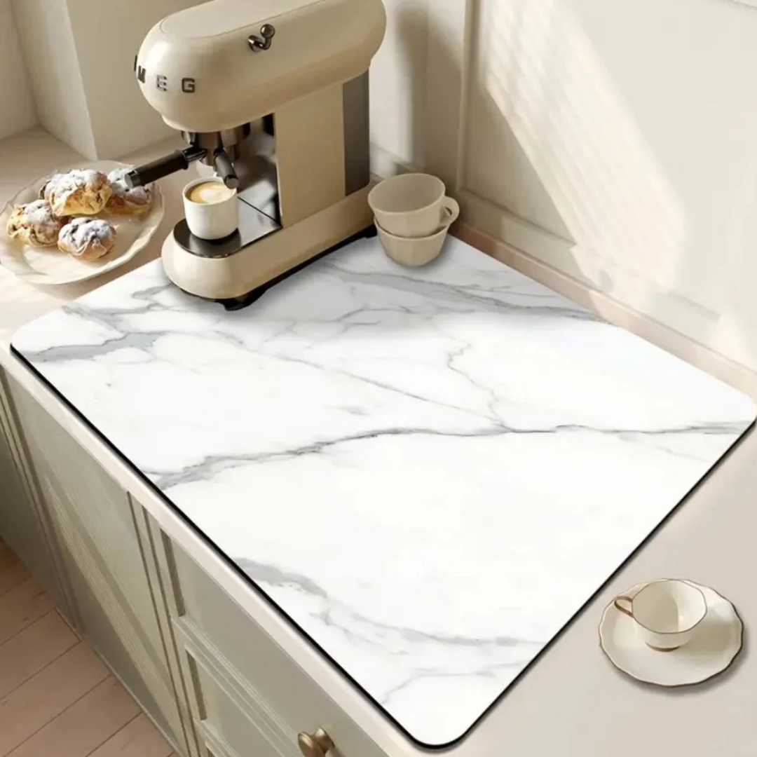 Premium Marmordruck Geschirrtrockenmatte | Spritzwasserfeste Küchenmatte mit Antirutschbasis