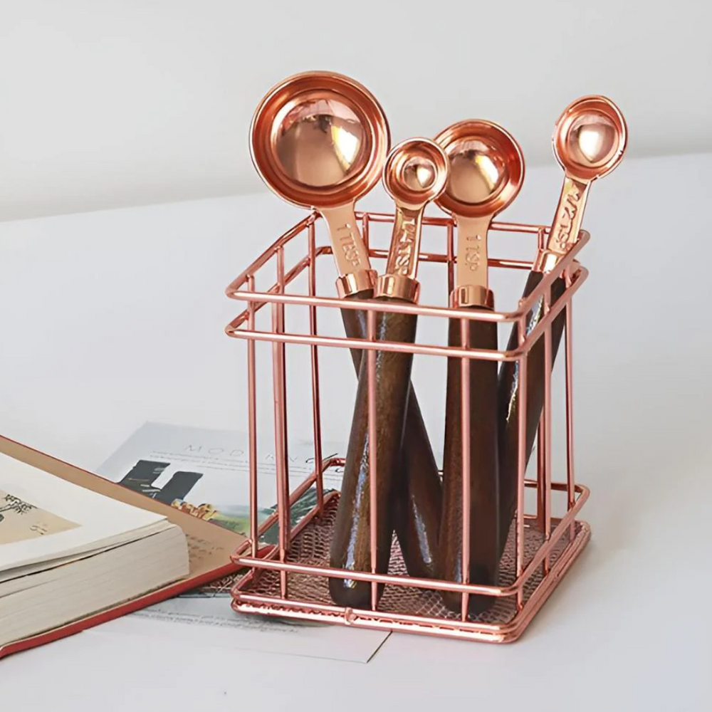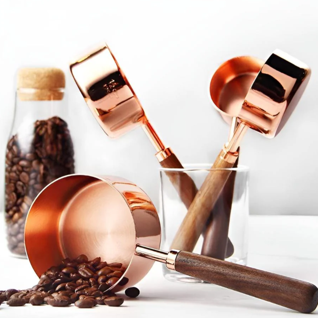 Kupfer-Messbecher-Set | Hochwertiges Edelstahl-Küchenbesteck mit Walnussholz-Griffen