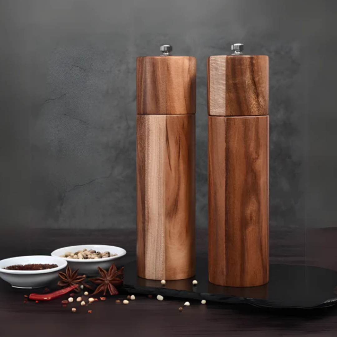 Verwandeln Sie Ihre Küche in ein Paradies für Kochliebhaber mit unseren exquisiten minimalistischen Holz-Gewürzmühlen. Fachmännisch aus erstklassigem Akazienholz gefertigt, vereinen diese eleganten Mühlen Form und Funktion auf perfekte Weise und liefern frisch gemahlene Gewürze, die authentische, intensive Aromen in jedem Gericht freisetzen.