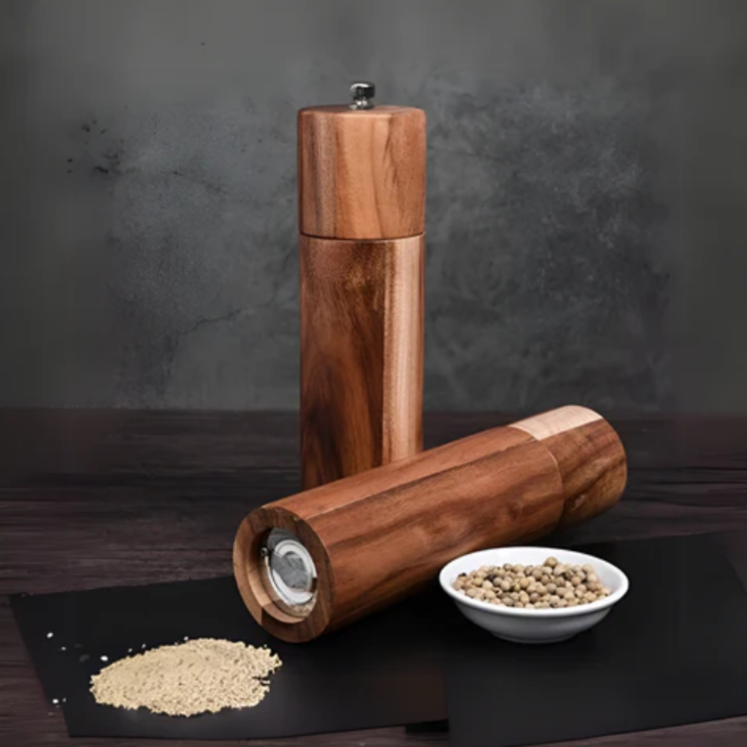 Minimalistische Holz-Gewürzmühlen | Premium Akazienholz-Mühlen mit verstellbarer Mahlstärke