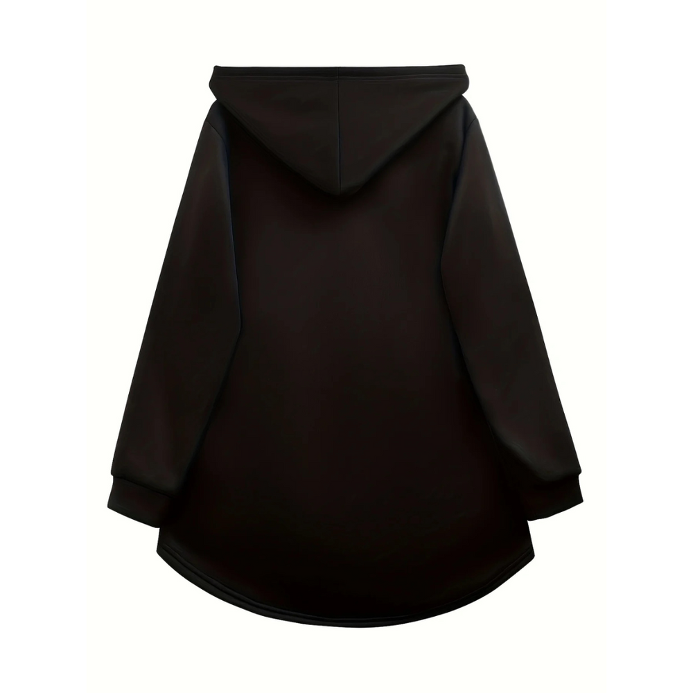Femininer Komfort-Schnitt: Der längere, leicht ausgestellte Schnitt mit dekorativen Knöpfen und kontrastierendem Saum schmeichelt der weiblichen Silhouette und bietet entspannten Tragekomfort