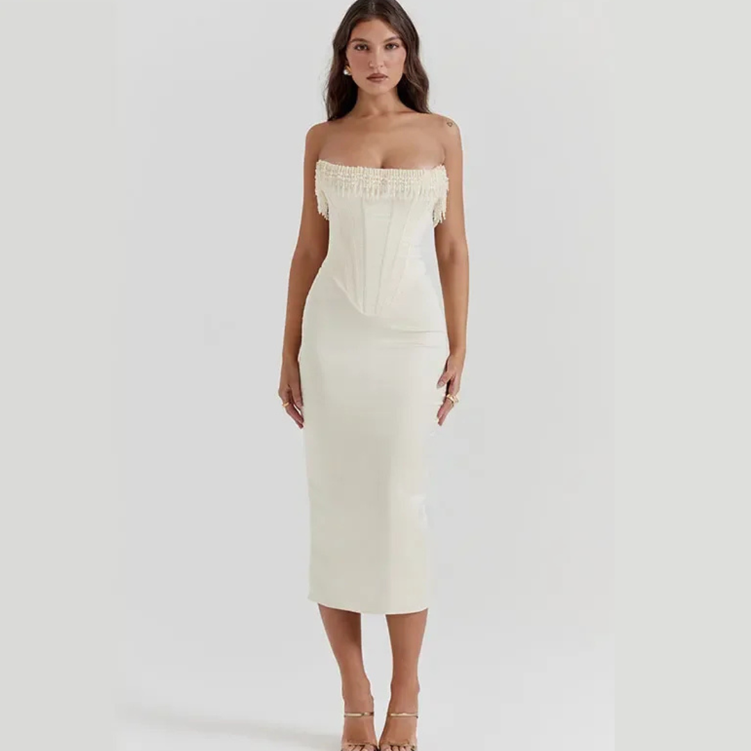 Clara Korsett-Kleid | Sommerliches Bustier-Midikleid mit Perlendetails für Damen