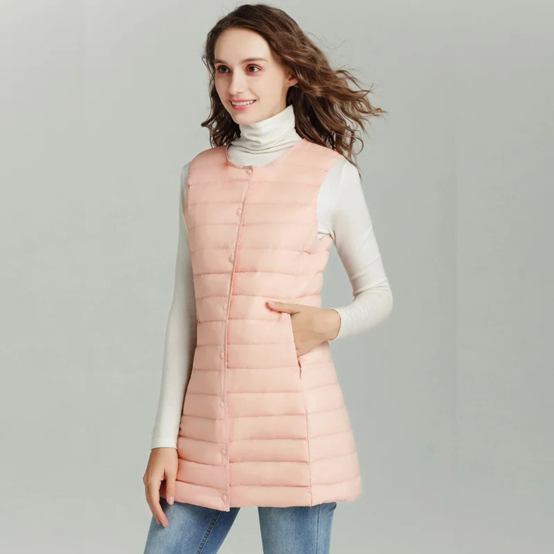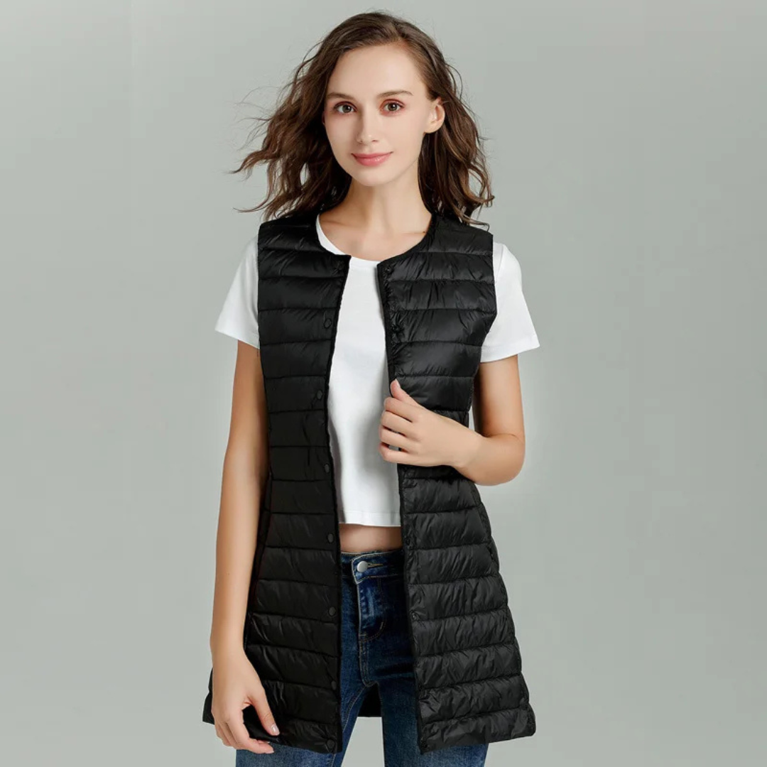 Lange Steppweste für den Herbst - Leichte Daunenweste für Damen