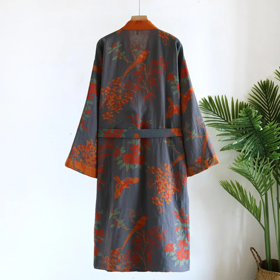 Retro Baumwoll-Musselin Bademantel – Leicht, Atmungsaktiv und Stilvoll für Damen