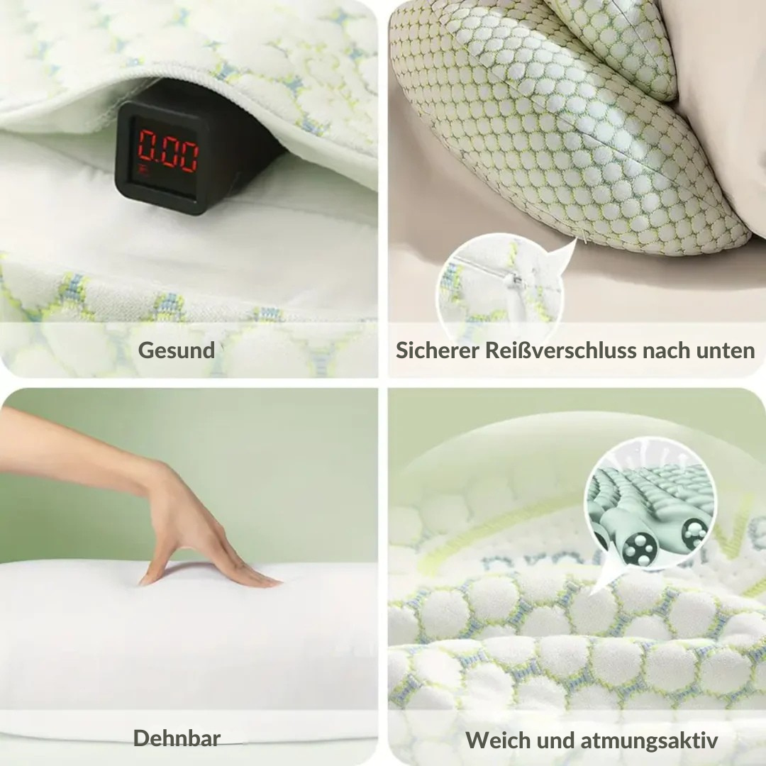 Kuschelfreundliches Design: Das Kissen ermöglicht bequemes Seitenschlafen, ohne zu viel Platz im Bett einzunehmen – so kannst du nah bei deinem Partner schlafen.