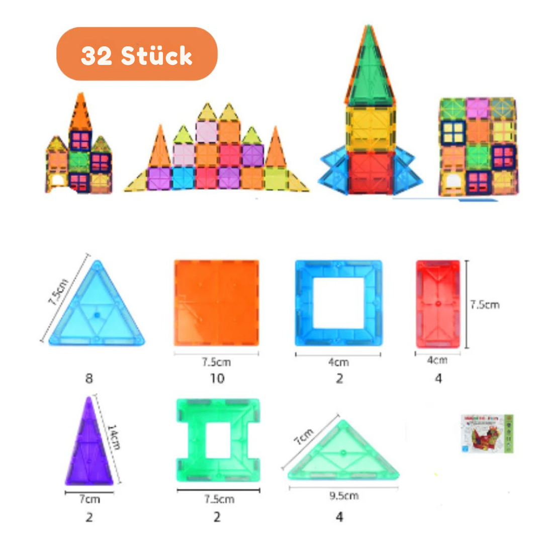 - Verschiedene magnetische Bausteine in verschiedenen Formen und Farben