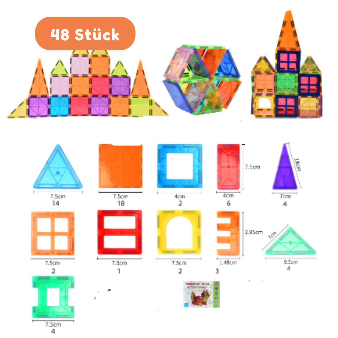 Ob allein oder gemeinsam mit Freunden und Familie – dieses magnetische Bauspiel bietet stundenlangen Spaß und zahlreiche Lernchancen. Kinder können selbstständig bauen oder im Team größere und komplexere Konstruktionen gestalten.