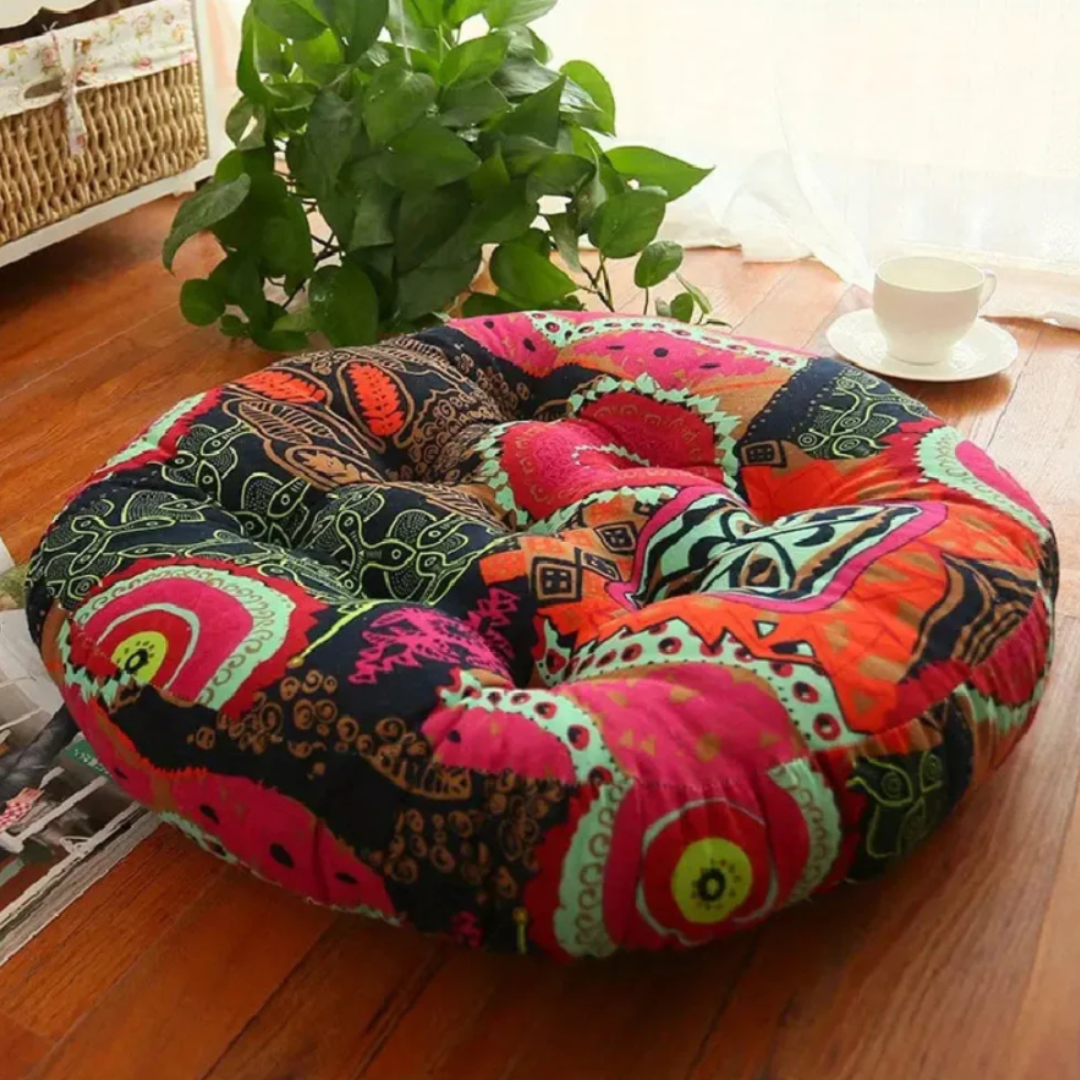 Das kunstvolle florale Boho-Muster verleiht Ihrem Wohnbereich Wärme und künstlerisches Flair - perfekt für Bodensitzarrangements, Yoga-Sitzungen oder gemütliche Leseecken.