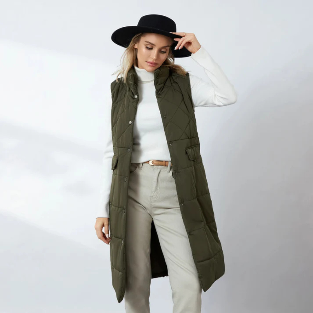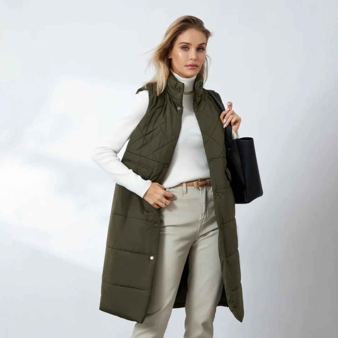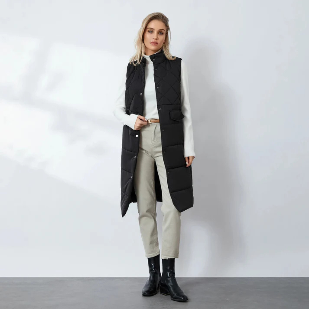 Steppweste für kalte Tage - Stilvolle lange Daunenweste für Damen