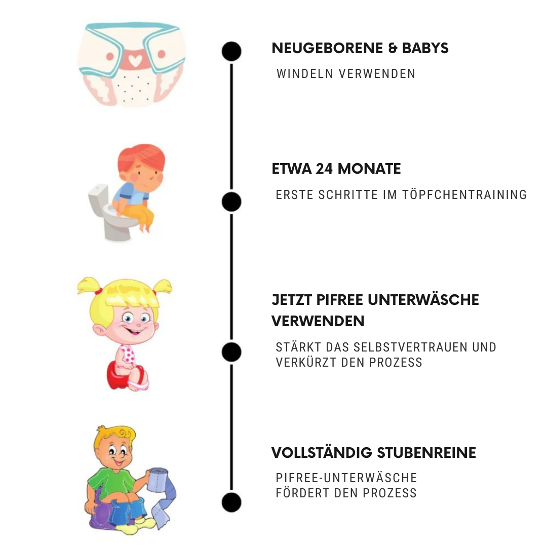 Lernen Sie die Töpfchen-Trainingsunterwäsche kennen – der perfekte Begleiter für Ihr Kind während der Sauberkeitserziehung. Mit dem aktuellen 2+2 GRATIS Angebot ist jetzt der ideale Zeitpunkt, in diese innovative und praktische Unterwäsche zu investieren.