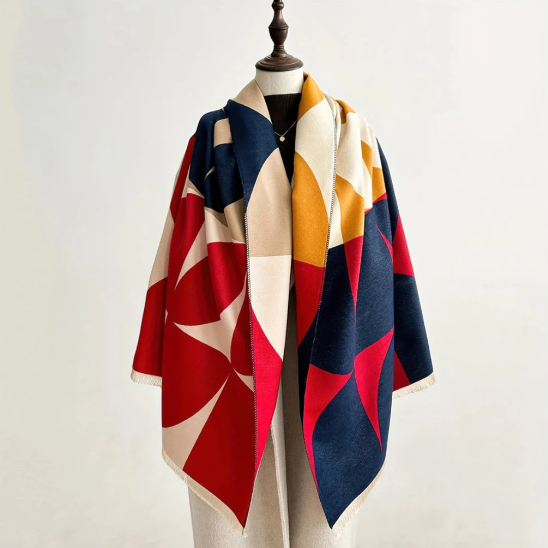 Verleihen Sie Ihrer Herbst- und Wintergarderobe ein stilvolles Update mit dem Veilura Poncho Wende-Schal. Gefertigt aus einer weichen und warmen Mikrofaser-Mischung, überzeugt er mit einem modernen geometrischen Colorblock-Design. Der Schal ist wendbar, leicht, angenehm zu tragen und maschinenwaschbar – perfekt für vielseitige Styling-Möglichkeiten.