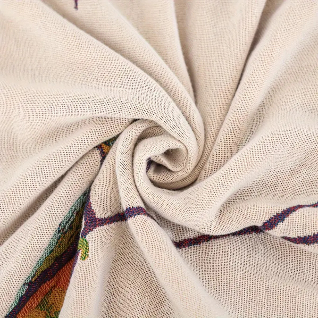 Verleihen Sie Ihrem Wohnbereich böhmischen Charme mit unserer Whimsical Bird Quasten-Baumwolldecke. Diese hochwertige 100% Baumwolle-Decke im Boho-Stil kombiniert Komfort mit ansprechender Ästhetik. Das Vogelmotiv mit dekorativen Fransen verleiht jedem Raum Vintage-Flair.